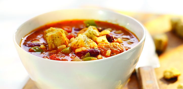 3-Add the kidney beans and cook for another 15 minutes. Remove the bay leaves and season to taste with salt and pepper before serving garnished with croutons.